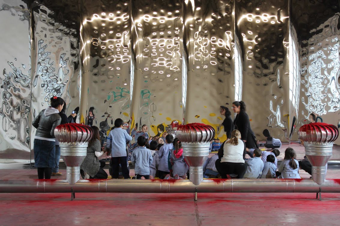 Observando la muestra con grupo escolar del Instituto Sarmiento, sala de 4 años